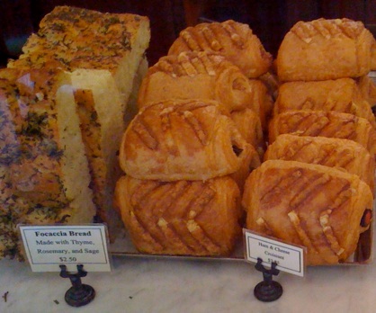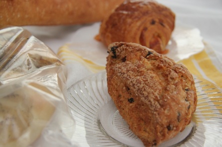 I got several things: the baguette, a gruyere croissant, a scone and some focaccia topped with onions and herbs. Here are some photos.