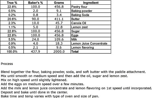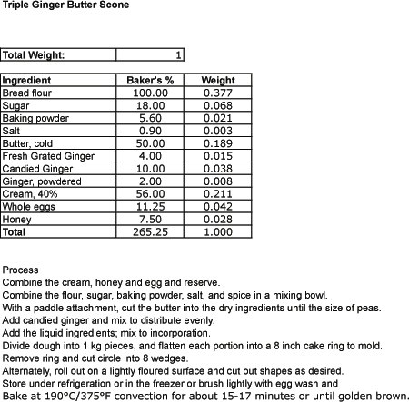 Below are some of my formulas for ginger scones and lemon pound cake.