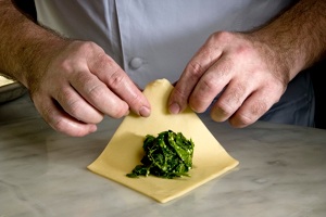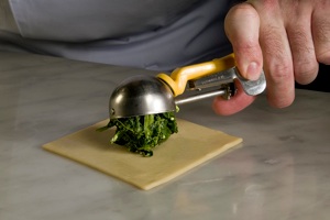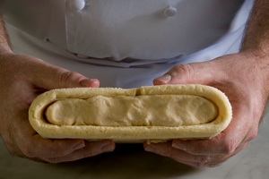 •Deposit the filling on the front 1/3rd of the pastry and fold the back portion of the dough piece to the front.