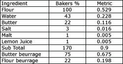 *Flour and butter for beurrage percentage is based on the sub-total dough weight