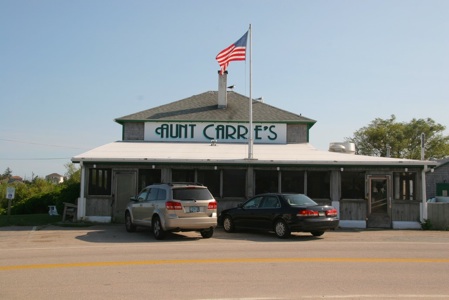 Aunt Carrie’s in Narragansett is a Rhode Island institution. It has been around since 1920 and some of my earliest memories are from inside the covered porch packed with the post beach crowd waiting for orders of stuffies and clam cakes. A lot of people get take out to eat at picnic table behind the vantage point of the photo, but they also have a dining room with water views.