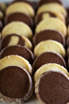 The basic diamond cookie is made from flour, butter, sugar and egg. Because the ingredients selection is so minimal, the quality of the ingredients must be high in order to have the desired texture: ethereal, light, crisp and tender.